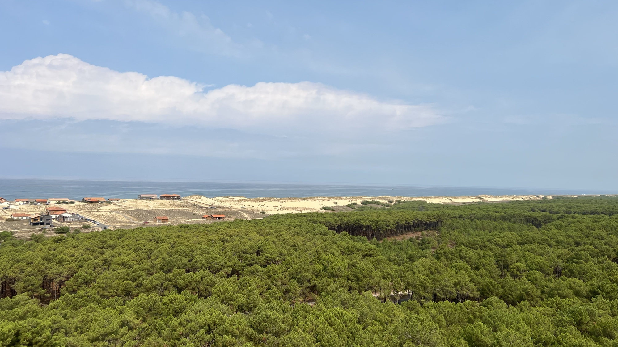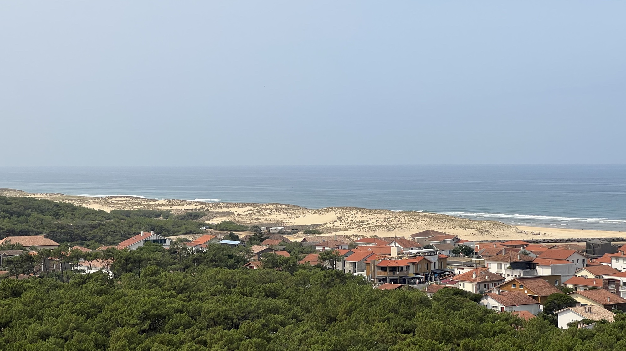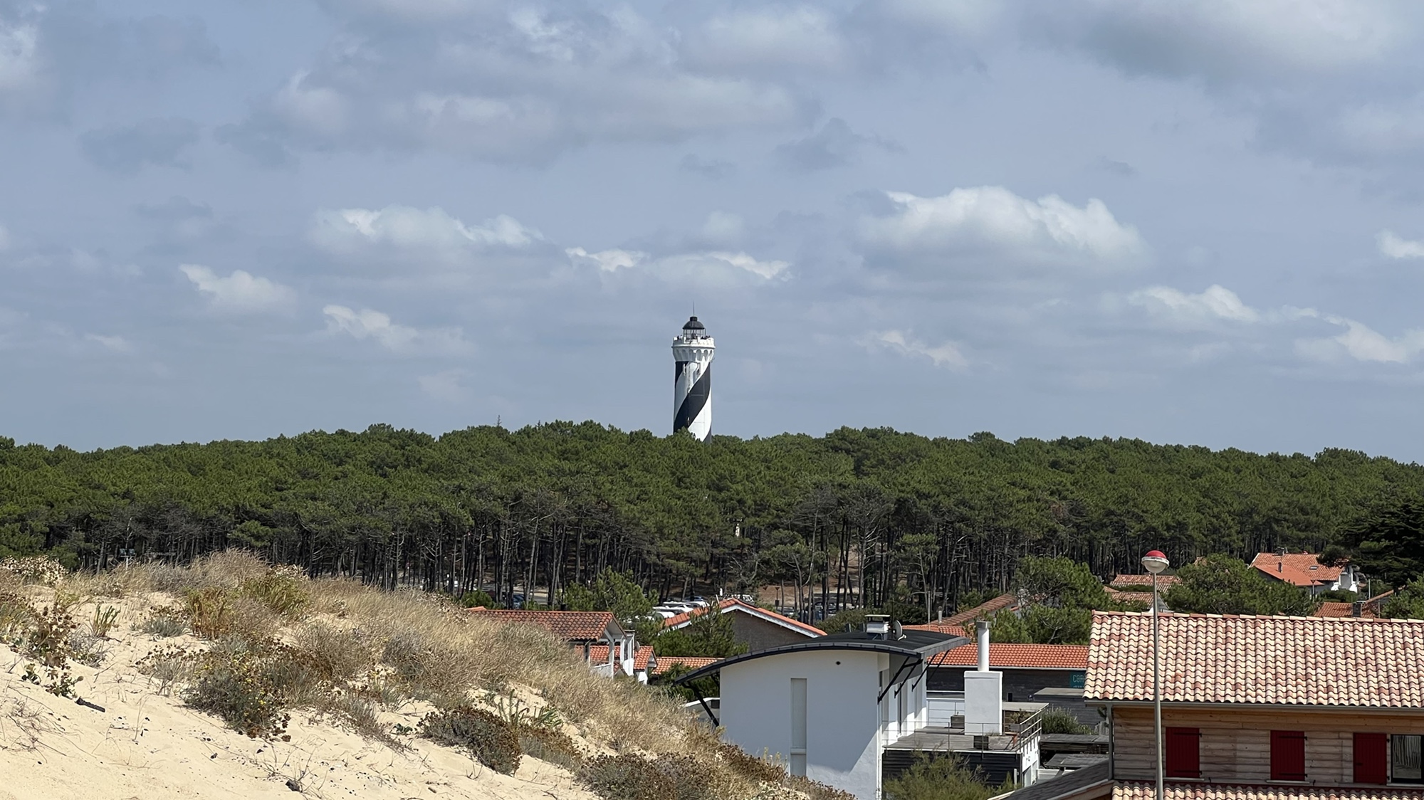 Heute machten wir uns am Vormittag auf den Weg nach Contis-Plage. Dort besuchten wir den Leuchtturm mit seiner markanten schwarz-weißen Bemalung. Nach 178 Treppenstufen hatten wir einen herrlichen Ausblick über den Atlantik und die Pinienwälder.